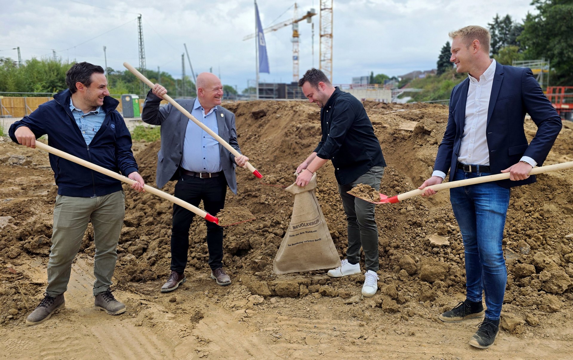 Mit dem Spatenstich fiel der offizielle Startschuss für den Neubau der Modellfabrik Papier Düren, der voraussichtlich Ende 2026 abgeschlossen sein wird.